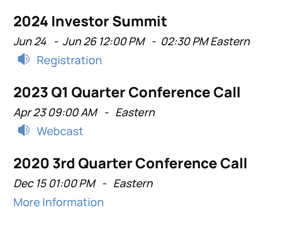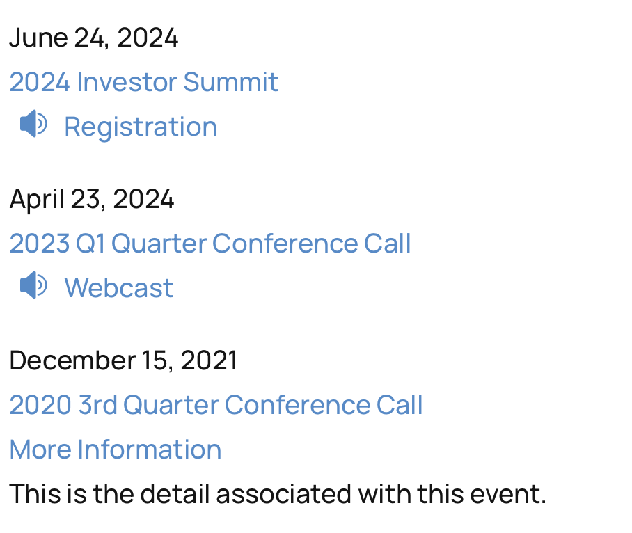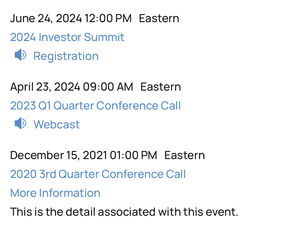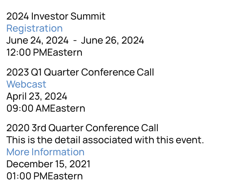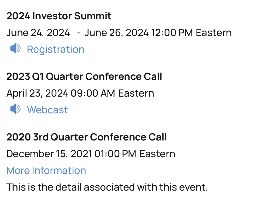 Display important events on your website through our IROffice portal. IROffice is a point-and-click CMS tool that can be updated quickly by you or the B2i support team.