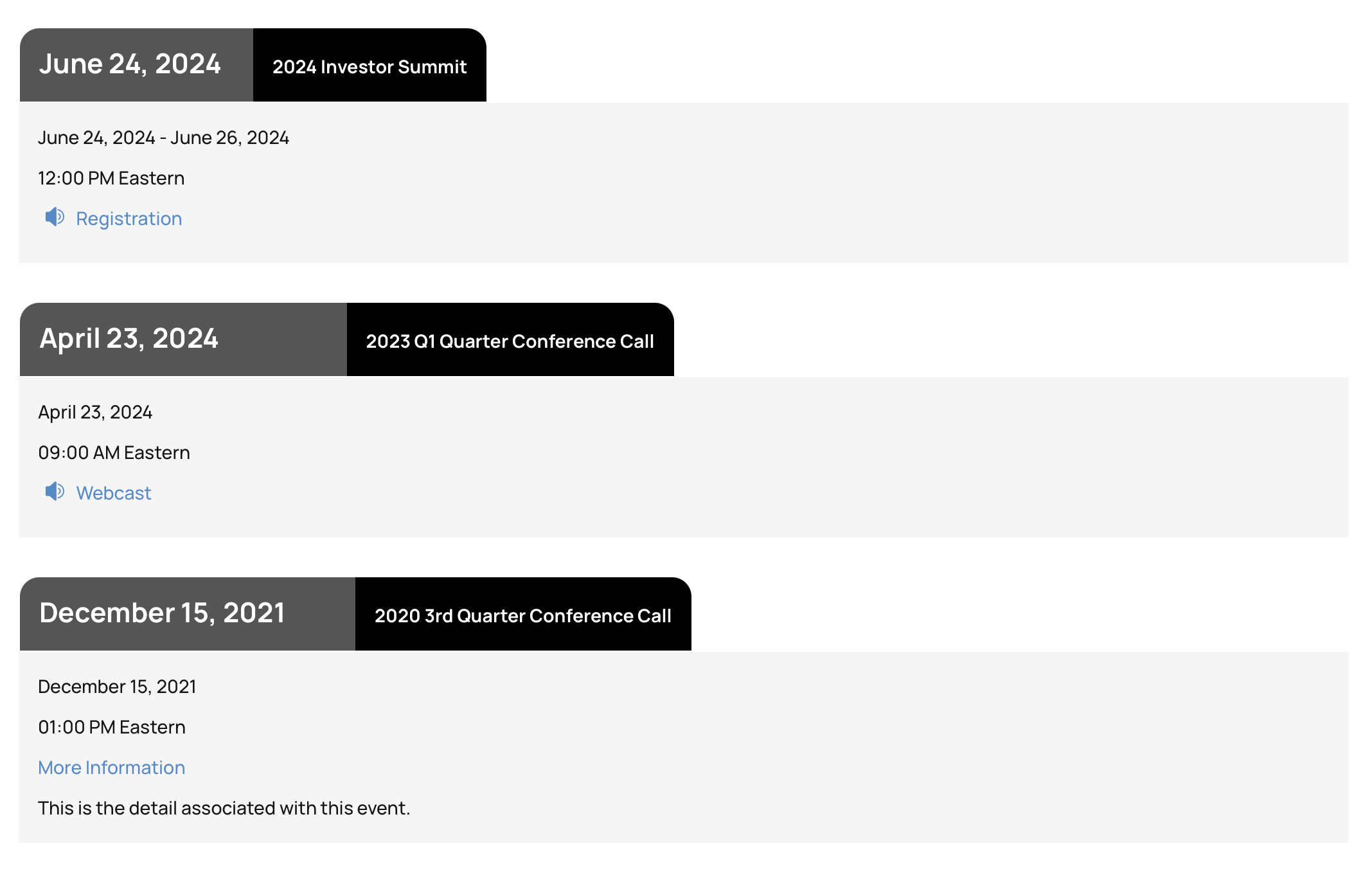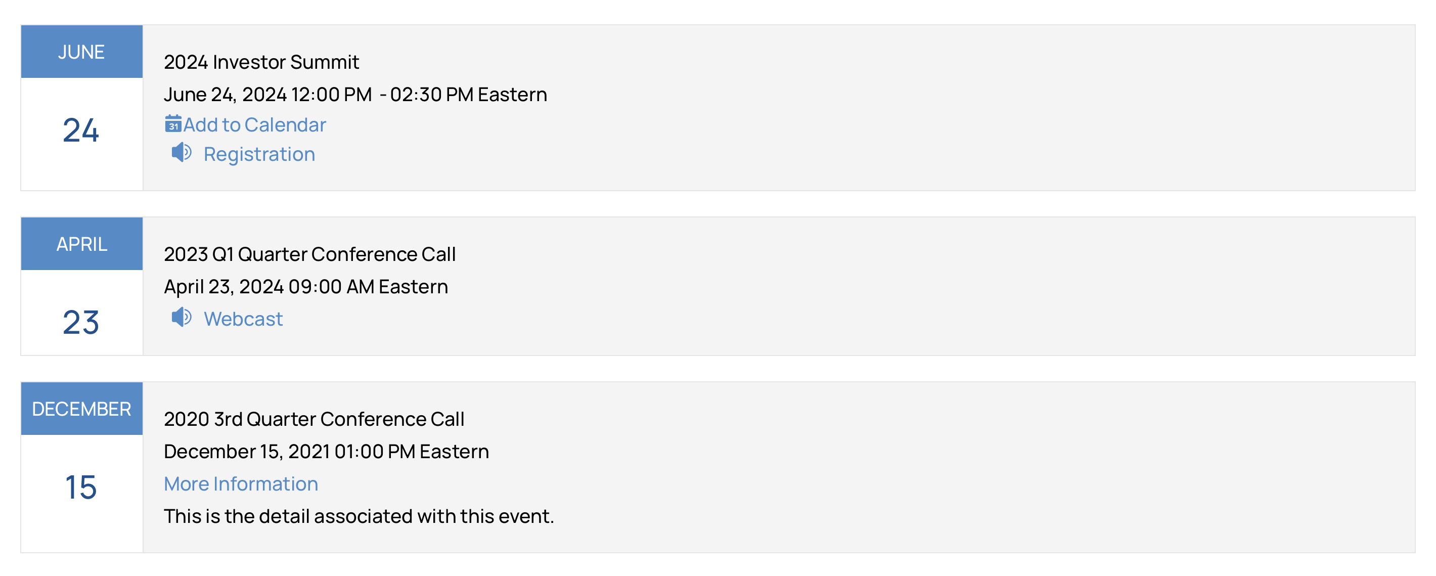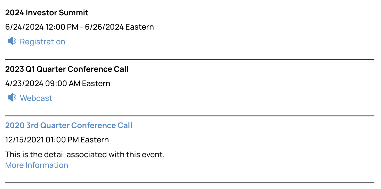 Display important events on your website through our IROffice portal. IROffice is a point-and-click CMS tool that can be updated quickly by you or the B2i support team.